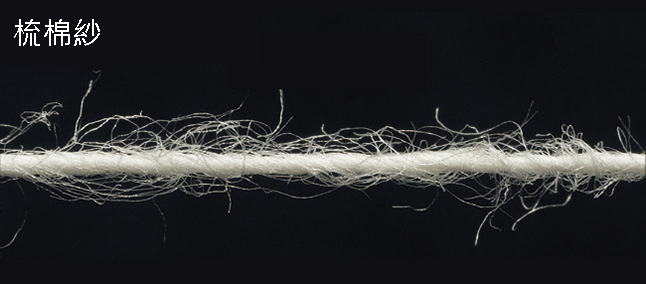 很常見的棉線。大約5%的短纖維被去除,與精梳紗相比,色調柔和,具有良好的質感,涼爽透氣。